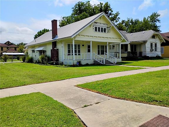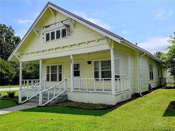 Welcome home to this very well-maintained bungalow. Spacious 2 bed with 1 1/2 bath at 1487 square feet. The living area expands the entire width of the front of the home with built in bookshelves/desk and electric burner fireplace. The formal dining area is extra-large compared to most. Convenient mud room entering from the carport where you can kick off your shoes before entering the kitchen and rest of the home. The kitchen boasts a large pantry closet and access to the spacious attic. Laundry room and separate 1/2 bath (water heater located here) off one bedroom that would be perfect for guests or master bedroom, full bath off hallway (furnace located in closet here) and another spacious 2nd bedroom. You will love the large covered front porch. Storage shed inside the fenced in back yard perfect for your pets and more storage at the end of the carport. This home is well maintained and super clean and situated on a corner lot. Appliances included but selling as-is that include refrigerator, electric range, washer and dryer.