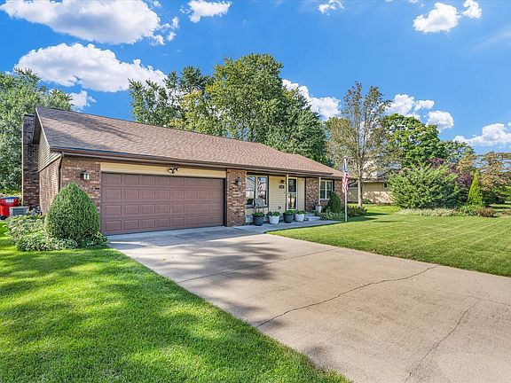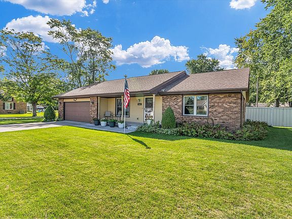 Welcome to this beautifully maintained ranch-style home in the desirable town of Savoy, offering comfort and charm. Situated on a spacious .43-acre lot, this residence features a lush green backyard, creating a serene outdoor setting. Step into the home and be greeted by a thoughtful layout with three bedrooms. The master suite is a retreat with a step-in shower and ample closet space. The home boasts two full baths, ensuring convenience for all. The heart of the home is the updated kitchen strategically positioned to overlook the family room with a cozy fireplace. The family room flows seamlessly into an open sunroom, providing a perfect space to enjoy the view of the backyard. Step out onto the expansive deck connected to a cozy patio, perfect for hosting gatherings or simply relaxing. The living room features a designated dining area, and luxury vinyl plank flooring runs throughout the main living spaces, adding a touch of elegance and easy maintenance. A separate laundry room enhances functionality, and all appliances, including the washer and dryer, are included in the home. Additional features include an attached two-car garage, a detached 24' x 24' two-car garage with extra storage, and a convenient storage shed. The 6' steel fenced-in backyard ensures security, making it a perfect space for outdoor activities. Built in 1976 and updated with a roof that's five years old, this home combines classic charm with modern conveniences. Located in a lower-tax area with easy access to local amenities, this property offers comfort and practicality. With approximately 1,800 square feet of living space, this well-cared-for ranch home is ready to welcome you.