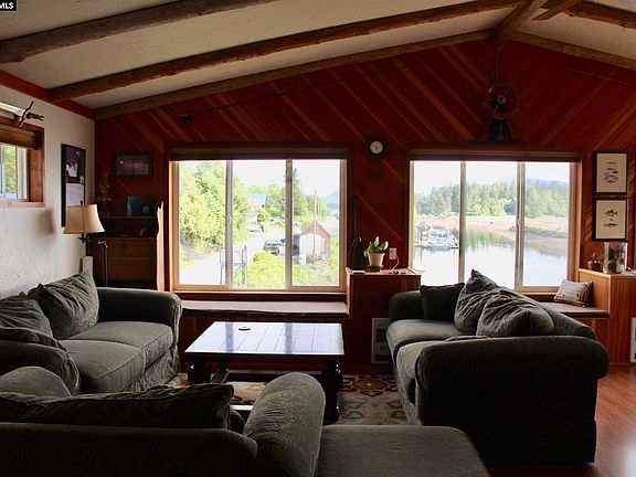 This waterfront home has the best of everything: a top location in town, yet privacy with wilderness & water views outside the window as well as the city dock! With 2BD, 2.5BA + bonus room, this home has stunning views of the harbor, mountains & sunsets. Enjoy the good life with a covered deck, a large heated boat/car garage & lots of extra parking. Beautifully finished, this home really is delightful! With bonus marine industrial zoning, there are lots of income possibilities & an amazing lifestyle here!