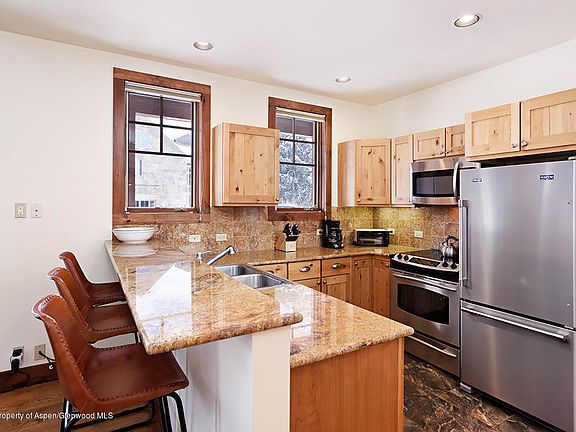 Absolutely gorgeous corner one bedroom condo within easy walking distance to the core of Aspen, the music tent and hiking trails. Move in ready, fully equipped and furnished. Brand new queen bed, Restoration Hardware leather sleeper sofa and new refrigerator. Beautiful modern kitchen perfect for cooking gourmet meals after a hike or ski day. Closets have been customized by California Closets. Perfect pied a terre in Aspen and excellent rental condo, long and short term. This condo has 2 very large storage units. The Christiana amenities include a beautifully landscaped common area with pool and hot tub.