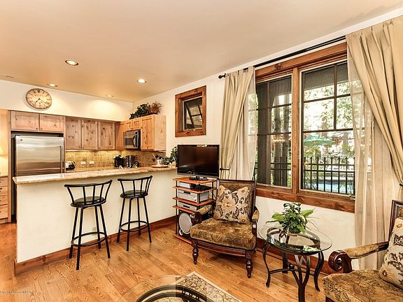 Ideally located along Main Street and along the free town shuttle, this new luxury condominium offers an open living space, a full kitchen with granite counters and lovely, designer interiors. The ground level unit features flat screen cable television in the living room and bedroom, gas fireplace and hard wood floors. The complex features an outdoor heated pool and hot tub right outside your door and on-site parking for one vehicle. During the summer months, this accommodation offers air conditioning. Housekeeping: $38 per hour