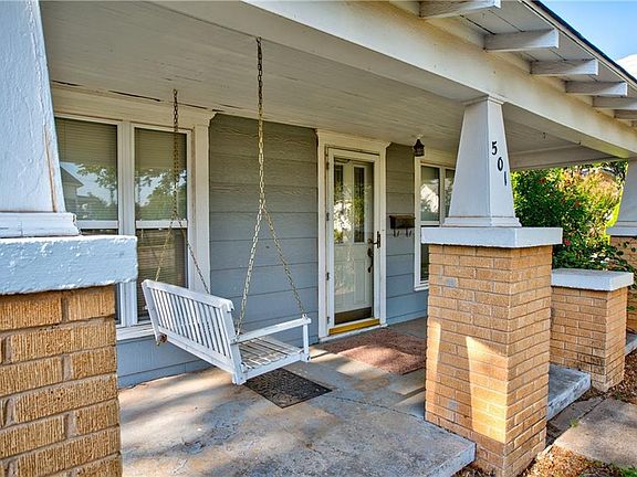Nice house on corner lot with 2 bedrooms and 1 full bath with shower and tub. Nice covered front porch with porch swing. The house has been freshly painted throughout. The living room features brand new carpet. There is a large bonus room that could be used as a 2nd living room or possibly a 3rd bedroom. The kitchen features a gas stove, lots of cabinets, ceiling fan and laminate flooring. Brand new gas water heater in inside laundry room. Some new tilt-in windows. Storage building. Nice 2-car carport. The roof and decking on the house are approximately 4 years old, enclosed porch does not have new roof and decking. Very nice home to be sold AS IS.