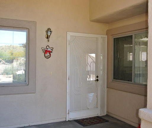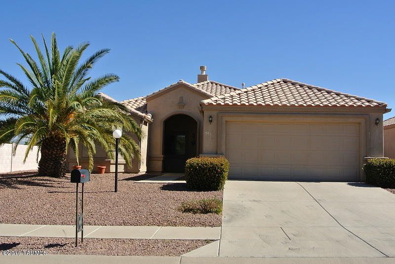 Lovely home with great views of the Santa Rita Mountains. Located high above the back yard neighbors. Easy care finishes including formica kitchen counter tops, marble bath counters. Skylights bring in the light. Tile with decorative tile in the entry and kitchen. Access to the back from either the great room or the den. Plenty of storage with the hall closets, cabinetry in the laundry room and in the garage. Solar screens and gutters. K E & G built home.