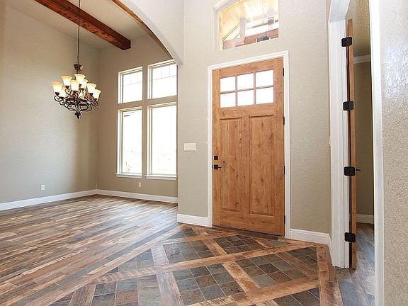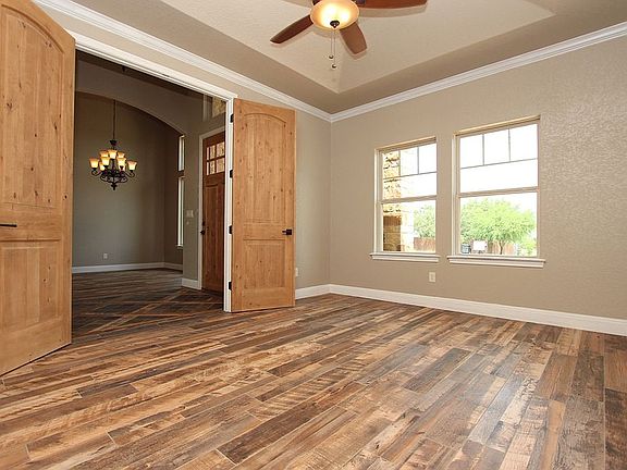 This stunning custom home sits nestled on a spacious 1.11 acre lot. Upon entry you are greeted with soaring ceilings and an abundance of natural light that can be found throughout. The open floor plan is well-appointed with warm and inviting touches that create the perfect space for hosting gatherings. Owner's retreat features a large walk-in closet, separate vanities, walk-in shower, and separate soaking tub. Each bedroom features a tray ceiling as well as custom blinds in all rooms. The outdoor entertainment space is ideal for summer BBQ's and displays a generous covered patio with ceiling fan and custom firepit.