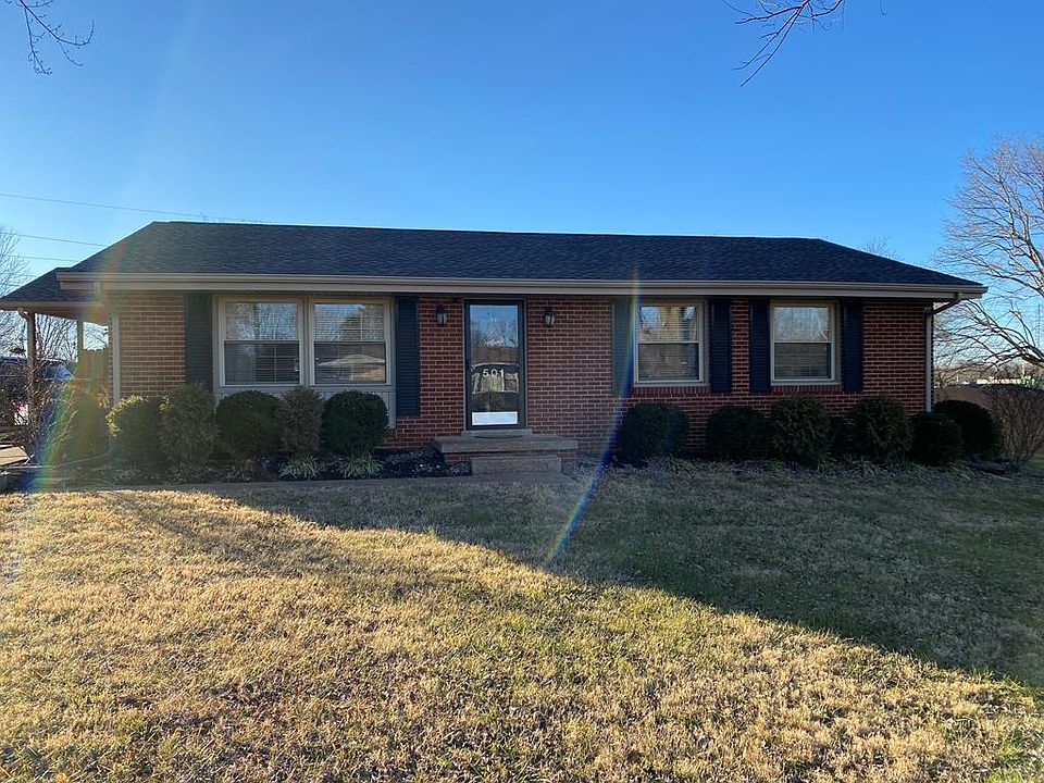 All brick, corner lot, fenced yard, Shingles replaced in 2020.Remodeled and ready for a new family. 3 bedroom, 1.5 baths. Laminate wood in living room. LVT flooring in kitchen & baths. Freshly painted. The carport, fire pit area and above ground pool create great spaces outside for the family.
