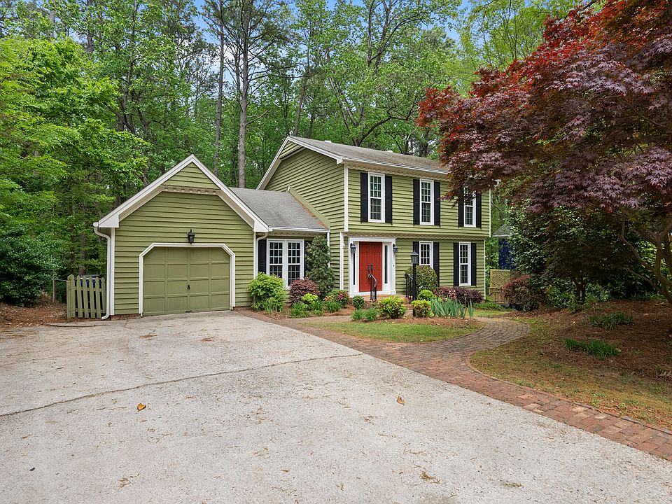 Classic 3Br 2.5 Bath home located just minutes from North Hills off of Six Forks Road! Large family room features fireplace and beautiful French doors overlooking private, wooded back yard. Eat in kitchen plus separate dining area. Lovely owner's suite with private bath & WIC. Laminate floors throughout. Fenced back yard with large deck perfect for entertaining or relaxing!