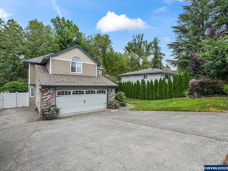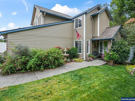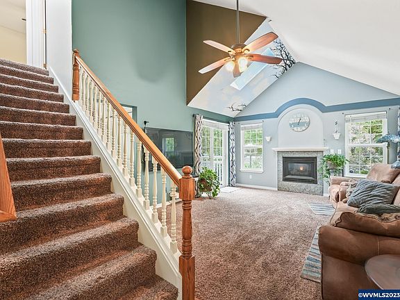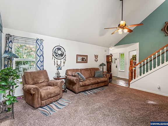 Home in Nazarene Park neighborhood set against greenbelt. Large living room w/ vaulted ceilings & gas fireplace. Sliding doors to back deck for indoor-outdoor flow. Kitchen w/ granite countertops, SS appliances, eat bar & pantry. Sunny office on main level. Laundry & 1/2 bath complete main level. Primary suite upstairs w/ vaulted ceilings, walk-in closet & private bath. 2 more bedrooms & full bath upstairs. Fenced backyard & raised garden beds. Close to restaurants, shopping, Woodburn Golf Club & I-5.