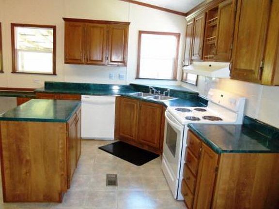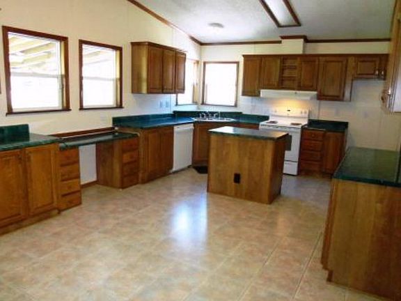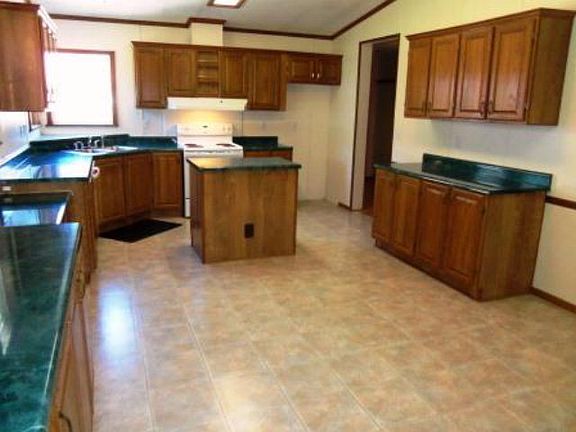 Modified triple-wide manufactured home with an addition. Includes huge custom dine-in kitchen. His and hers walk-in showers in master bath. All bedrooms have multiple closets. Gas fireplace in the living room. Large back deck and covered porches. There's even a nice storage building with workshop.