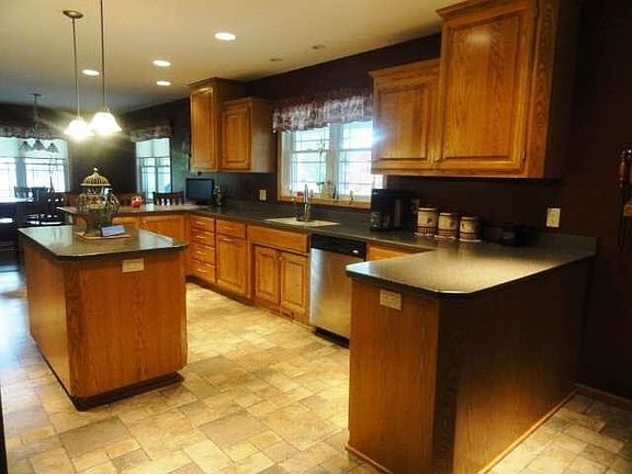 Quality built home by Alan Van Gorp with attention to detail, storage, efficiency, spaciousness and privacy. Take in the country air on the covered porch that adds the "country" feeling to this modern home. Enter into the heart of the home where all can find a place to gather. The kitchen is amazing with corner pantry, plenty of countertop in beautiful corian that features undermount sink, center island and if that's not enough, add under cabinet lighting, disposal, mixer stand, pull out drawers and well.....feel free to discover all the kitchen has to offer! All living spaces are unique and can be designed to conform to all the homeowners needs. The family room is cozy with beautiful wood walls, corner gas fireplace (lighted too!), and a bonus area for an exercise area, office, play area or adding a kitchenette.......you decide! Whatever you're looking for, this home is sure to have. Garage and entertainment room was built in 1978.