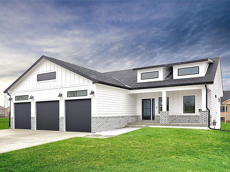 Nestled in this amazing neighborhood of Jordan Lea you'll discover this lovely Urbandale modern farmhouse ranch style home. This stately home features a spacious garage with unique 3 individual doors, wall mount openers with electronic locks, electric car connection, and freshly done epoxy floor. Once inside you are greeted by a welcoming foyer accented by an entire wall of trim design running along the stairs to the bright and airy basement. You'll notice the spacious open floor plan with vaulted ceiling with dark stained beams and a wrap around kitchen with plenty of space for large gatherings and seamless entertaining! There are 2 living spaces both enhanced with showpiece linear fireplaces. Kitchen presents picturesque tile backsplash, floor to ceiling cabinets, black SS appliances and gorgeous double edge quartz countertops. Master retreat provides a generous space, stained barn door, master bath with frameless glass enclosed shower, matching quartz and custom master closet. All information obtained from Seller and public records.