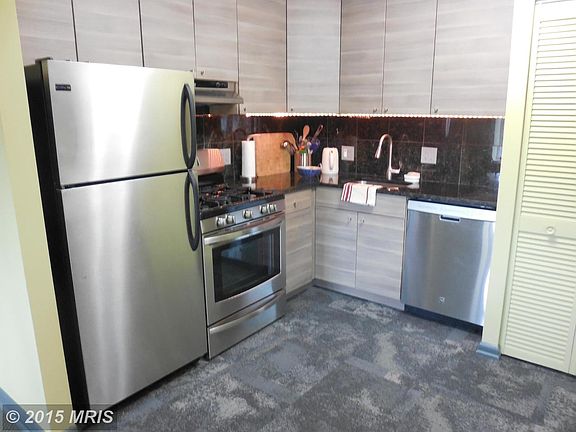 Wonderfully updated top-flr condo. Parquet floors covered by easily removed carpet tiles. LR opens to east-facing balcony. Kit updated 2014 w/SS appliances: gas range, DW, MW, sink. Ikea cabs, undermount lights. Washer/dryer combo. HVAC replaced 2015, windows 2010. Condo fees incl gas, water! Mirrored closet doors, Elfa organizing sys though-out. Min to National, Pentagon, DC.