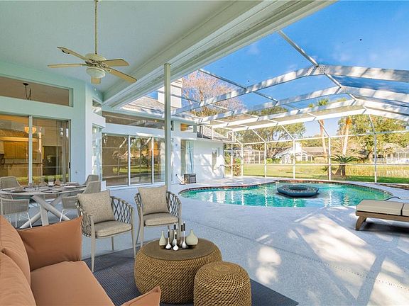 One or more photo(s) has been virtually staged. Welcome to this beautiful home! Upon entering you will be greeted with soaring ceilings, open floor plan an abundance of natural light and a gorgeous pond view! What more could you want? How about... a NEW ROOF, NEW WATER HEATER, and NEW INTERIOR PAINT all in 2020. And, that's not all, the NEW A/C AND EXTERIOR PAINT were both completed in 2019! With the major systems completed, you will have a blank slate to bring your imagination and create the home you've been dreaming about (instead of someone else's vision!) This great home features an awesome layout with 3-way split of the 4 bedrooms, 3 full baths, fireplace, and very spacious bedrooms/living areas! The master bedroom and living room both feature 8' sliders that hide away and bring the outdoors in with breath taking views of the pool and pond. Third car garage has been converted and can still be used as a garage or used as additional air conditioned space for an office or workshop! Whether this will be your forever home or you choose to make it an investment home, the possibilities are absolutely endless! Tampa Palms has 5 community parks including a Riverside park, tennis, volley ball, racquetball, community club house and the best parks and playgrounds around! Convenient to A rated schools, shopping, hospitals, restaurants, VA, Moffit, USF and downtown Tampa with all it has to offer! Hurry, as this property won't last!
