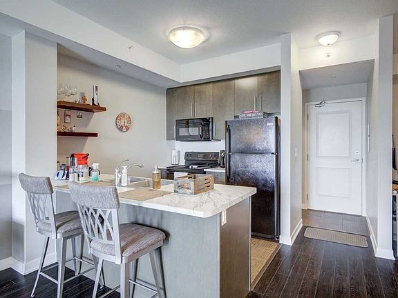 Gorgeous South Facing 1Br+Den At Vibe Condos Conveniently Located Close To Highways, Shopping, Parks, Restaurants And More! High Ceilings And Open Concept Layout In This Smart Floorplan, Ready To Move In And Make It Yours. No Front Closet But Separate Den Will Easily Hold A Portable Wardrobe. Building Amenities Include Fitness Room, Party Room, And Rooftop Terrace.