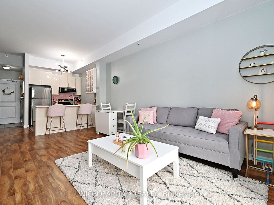 Welcome to Penthouse Suite 428 at the sought-after Vibe Condominiums in North Burlington where contemporary design, upscale finishes, and effortless convenience come together in perfect harmony. This bright and spacious 1-bedroom + den suite features soaring 10-foot ceilings, an open-concept layout, and floor-to-ceiling windows that fill the space with natural light. The modern kitchen is a true centerpiece, complete with granite countertops, stainless steel appliances, a sleek breakfast bar, and stylish finishes ideal for both everyday living and entertaining. The primary bedroom offers a large closet, while the versatile den can easily serve as a home office, guest room, or personal fitness nook. Step outside onto your private balcony and enjoy unobstructed with partial Lake views, perfect for your morning coffee or evening sunsets .Residents of Vibe enjoy premium amenities, including a rooftop terrace with panoramic views, fitness centre, party and theatre rooms, outdoor BBQ area, and ample visitor parking. This suite also includes one underground parking space (conveniently located near the entrance) and a locker for extra storage. Nestled in Burlington's vibrant Uptown neighbourhood, this location is steps from Millcroft Shopping Centre, restaurants, parks, and trails, with easy access to major highways and Appleby GO Station. Low condo fees include heat and water, making this an unbeatable combination of luxury, lifestyle, and value. Whether you're a first-time buyer, downsizer, or investor, this move-in-ready penthouse offers everything you've been looking for and more.