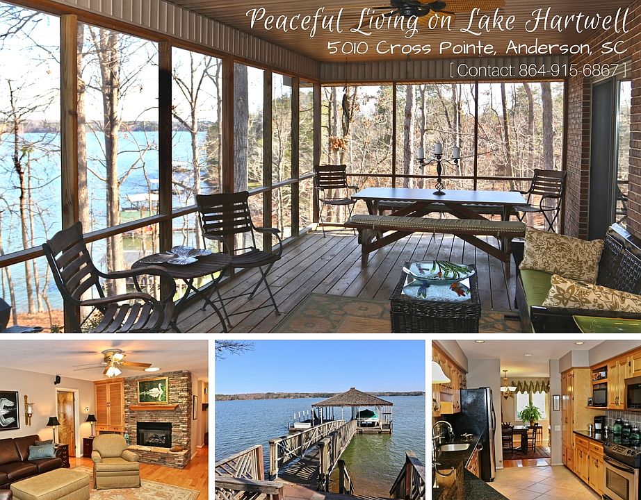 As soon as you walk into this gorgeous waterfront Lake Hartwell home you will want this home as your own! Capture the breathtaking views of the lake from the deep water dock, deck or screened porch of this lovely, well maintained home on 1 acre. Established, mature and mostly irrigated landscaping throughout, the exterior of this home is pristine! The stunning hardwood floors, stacked stone fireplace, and peaceful screened porch with brand new composite decking are just a few interior features that will steal your heart. Boasting natural light throughout, with casement windows plus 2 brand new french doors and 1 large sliding glass doors to the screened porch - each from kitchen, family room and master bedroom. There is a view of the lake from all the rooms of this home except one bedroom. The cook in the family will love the kitchen that offers beautiful custom cabinets with granite counter tops and stainless steel appliances, eat-in dining with stacked stone detailing on the breakfast table, tile floors and back splash, double sink with disposal plus a dining room off the kitchen. Warm and inviting family room with stacked stone fireplace (vent less gas logs) and built in cabinet. Master bedroom features a walk in closet, freshly painted bathroom with new counter top and tiled shower with custom glass door. The other 2 bedrooms have nice closets and are a good size. Tranquil settings on the large screened in porch (28'5"x 11'3"), perfect for your drinking your morning coffee, a quiet dinner or an evening of entertaining. Step down to the deck, again with new composite decking, that includes lounge space and a grilling platform with gas hookup. Paved golf cart path from the garage to dock with turn around/parking at dock. The oversize (27'7"x 23'5") 2 car garage has a utility sink, ample storage space and a pull down attic. Dock with 60' walkway, IPE Brazilizn hardwood decking, 2 covered boat slips with lifts, dock box, water and electric. Approx. 160' of shoreline. Utilities: electric, septic, public water, propane for fireplace and grill on deck. Located on a quiet cul-de-sac, with long private driveway...ARRIVE HOME TO LAKE LIFE AT ITS BEST! ** please see in the associated the list of all the home owners have done to this home during their ownership. You will not be disappointed in this amazing lake home!