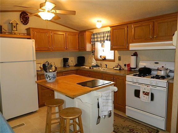 Large master bedroom has walk-in closet and ensuite bath. Eat-in kitchen, deck ,storage shed. Mobile home will need to be relocated upon sale. Kitchen island not included.