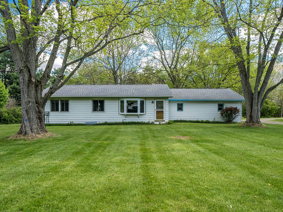 Harper Creek ranch sitting on a dead end road with 1.5 acres that has room for storage storage and storage! House has 3 bedroom and 1 full bath. Basement is open and ready to be finished off however you want it. Outside you have an attached 2 car garage them you have an additional detached 2 car garage and a 30 by 40 pole barn that's 12 feet tall with a cement floor. Just down the street is the public launch for Graham Lake so you could always rent out boat storage if you wanted. This is a must see before it's gone so call Jeffrey A Penick today!