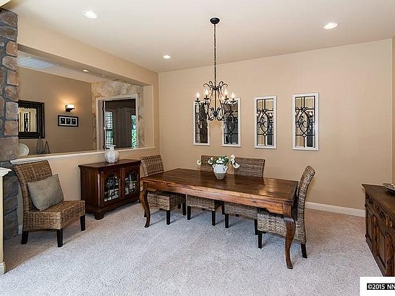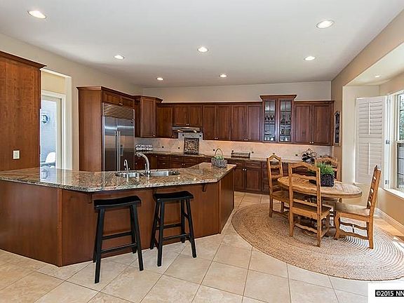 Exquisite single story home located in distinguished Caughlin Ranch neighborhood. Spectacular floor plan featuring separate and formal living areas with high ceilings and tiled courtyard. Gourmet kitchen with professional Sub-Zero stainless steel Fridge, Thermador cook top, cherry wood cabinetry, granite counter tops & spacious island with breakfast bar. Master Suite features a luxurious custom stone wall, walk-in-closet with built-ins, dual vanities, garden tub and large glass enclosed shower.