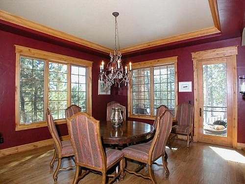 EXQUISITE!! There is no other way to describe this stunning 4 bedroom, 5 bath home located on 2.5 acres in sought after High Forest Ranch community. Every inch thoughtfully planned and designed throughout this 5800+ square foot ranch style home. Welcome inside where you are greeted by hardwood floors throughout the main level and the gorgeous beamed great room with wall of windows and stone wall that brings focus to the fireplace that will be your gathering spot during those cold Colorado nights. Enjoy formal gatherings in the dining room with walkout to the deck. A cooks' delight in the state-of-the-art gourmet kitchen with island, pantry, stainless steel appliances and bayed breakfast nook with walkout to the striking covered back deck to enjoy the views. The home office also showcases beams and built-ins. Retreat to the main level master suite with bayed sitting area, fireplace, custom closet and exquisite 5 piece bathroom. Take the stairs down to the lower level where you will find wood flooring throughout including in the game area with 3-sided fireplace shared with the family room that walks out to the covered back patio, dramatic bar area and separate home theater with step-down seating. The three bedrooms are suites and include private bathrooms. Numerous walkouts from the home to extensive outdoor living spaces. Central AC, radiant heat and many more stunning features throughout!