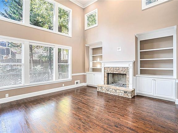Unbelievable opportunity to make the esteemed Vinings Estates community your home! This stunning 4-bedroom, 3-bathroom residence dazzles with a two-story Family Room highlighted by an expansive wall of windows and a magnificent stone fireplace, artfully complemented by built-in bookshelves. The open floor plan flows seamlessly into a gourmet kitchen featuring sleek granite countertops, chic white cabinets, and a cozy breakfast nook adorned with bay windows that overlook the family room. You'll find a formal dining room, an elegant living room, and a guest bedroom complete with a full bathroom on the main level for added convenience. Ascend to the upper level to discover an oversized Master Suite, where a charming sitting area and a vaulted bathroom with a luxurious jacuzzi tub, dual vanities, and a spacious walk-in closet await. Generously-sized secondary bedrooms offer ample space for family and guests. Enjoy peace of mind with the newly painted exterior and newly replaced gutters (to be installed prior to closing). Nestled on a private corner lot, this home also grants access to a vibrant community packed with amenities: two refreshing pools, a thrilling waterslide, seven tennis courts, active swim teams, basketball courts, a playground, and a calendar full of community social gatherings.