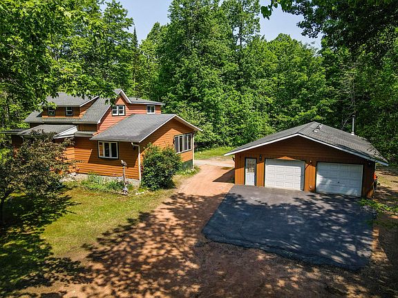 This 2,700 sq ft, 4BR/2BA home offers space, functionality, and a private country setting just minutes from Rhinelander and Nicolet College. The main level features a large kitchen with custom cabinetry, main floor laundry, new carpeting, and an oversized primary bedroom with attached sunroom—perfect for a hot tub or lounge space. Beautiful use of wood including birch and tamarac throughout the home adds a warm Northwoods feel. A major highlight is the 21x30 heated workshop, ideal for hobbies, storage, or a small business. The home was moved to this site and features a newer poured foundation with a dry, finished basement including a family room and optional wet bar. Additional perks include a supplemental wood-burning furnace, two-stall garage, apple trees, natural gas, and high speed internet. With four true bedrooms and 1.2 wooded acres, this move-in ready home combines space, quality, and privacy in a desirable location.