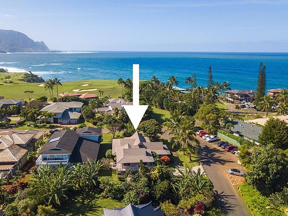 Location, location, location! Situated directly across from Queens Bath and surrounded by multi-million dollar homes, this little gem is a diamond in the rough. The floor plan allows for flexible living arrangements. The main house consists of an open beam kitchen and living room with game room, wet bar, two bedrooms and two bathrooms. Above the garage is a large bedroom suite with a sitting area, bathroom and wrap around lanai.