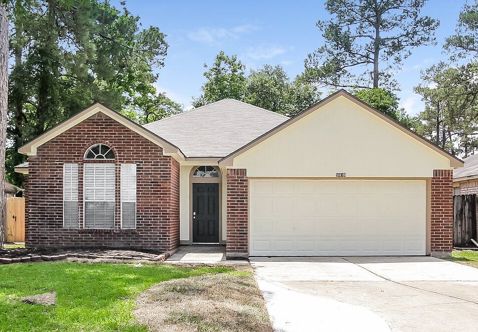 Please note, our homes are available on a first-come, first-serve basis and are not reserved until the lease is signed by all applicants and security deposits are collected. This home features Progress Smart Home - Progress Residential's smart home app, which allows you to control the home securely from any of your devices. Want to tour on your own? Click the "Self Tour" button on this home's RentProgress. This inviting three-bedroom, two-bathroom rental home in Spring, TX offers 1,277 square feet of interior space and comes with the convenience of an attached garage. Inside, the vinyl plank flooring and extra-high ceiling create a comfortable feel in the living room, while a lighted ceiling fan offers temperature control. Steps away, sliding glass doors in the dining room keep the space feeling bright and sunny. The eat-in kitchen boasts quartz countertops, stainless steel appliances, and a spacious layout. You'll love having a double-basin sink and an above-the-range microwave. The main bedroom suite features a walk-in closet and an en suite bathroom with dual vanity sinks and a combination bathtub and shower with a tile surround. Schedule your personal tour of this modern Spring smart home today!