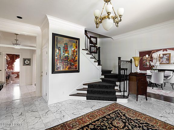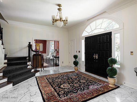 Introducing this beautifully maintained and landscaped home conveniently located in the Federal Hill neighborhood off Blankenbaker Road. As you enter the large marble foyer, you will instantly notice the exceptional attention to detail that awaits. A lavish staircase and natural light greet you while a formal sitting room is to the left and formal dining room is to the right. The formal dining room includes a fireplace and large windows overlooking the perfectly maintained front yard. A large family room with a gas fireplace, built-in bookshelves and a custom bar area are located in the back of the home and is an ideal space for a cozy night in or for entertaining guests. The custom bar includes a wine fridge, wine storage, and custom cabinetry for display. The large eat-in kitchen includes high-end stainless steel appliances, a robust granite island with seating and loads of cabinets for storage and countertop space for cooking and entertaining. A built-in china cabinet finishes off this beautiful kitchen and includes display space and additional storage. The kitchen also includes an eat-in area and doors and windows overlooking the scenic backyard. Additionally, there is a mud room off the kitchen with built-in nooks and cubbies and additional refrigerator. A three-car garage with epoxy flooring and built in cabinets for storage is located off the mud room. The luxurious primary bedroom is located on the second floor and includes a spa like bathroom with dual vanities and a large walk-in closet. Off this bedroom, is a private sitting area that opens to an outdoor balcony. Down the hall is a laundry room and three additional bedrooms with walk-in closets and three full bathrooms. The walkout lower level has a bedroom with full bathroom, workout room, and large rec room with fireplace. The unfinished area of this level has ample storage room. The outdoor decks provide wonderful opportunities for entertaining and includes a custom built outdoor fireplace and grill area. This home has been wonderfully maintained and includes first class updates throughout. The location and offering of this home make it a must see. Schedule your private showing today.