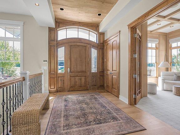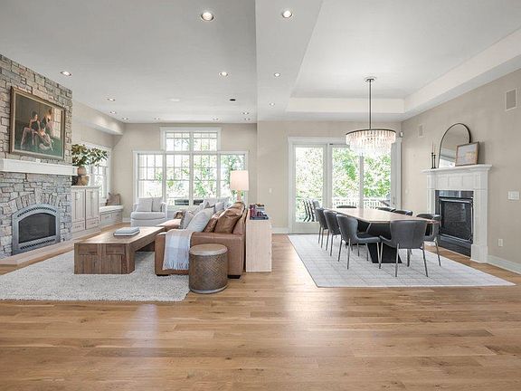 Stunning custom built home on 2.9 acres overlooking Foster Lake! Features include new wire-brushed white oak hardwood floors, updated cabinetry, paint, gourmet kitchen, and main-level master with lake views. Lower level offers 3 BRs (2 suites), theater, out-dooor sport court, and in-floor heat. Enjoy a 6-car heated garage, across from Fox Hollow Golf Course.