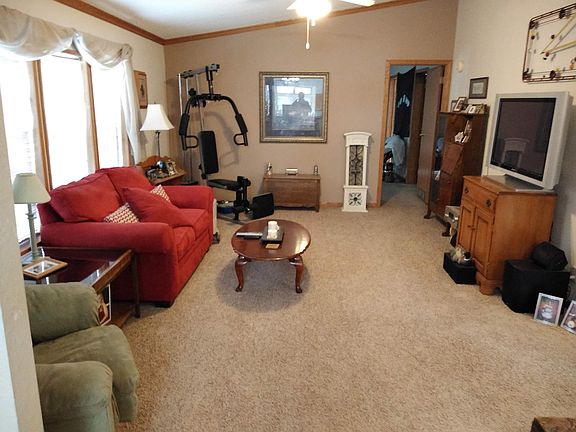 MAJOR PRICE REDUCTION! Very nice Schult manufactured home with 1960 sq. ft. finished featuring 3 bedrooms, 2 bathrooms, formal dining, and a detached garage. As you enter the home you will notice the open floor plan with vaulted ceilings, crown molding and a sunken kitchen with a dining area and family room. Many built ins throughout the home including a built-in china in the formal dining room. The spacious master bedroom suite has a garden tub, shower, dual sink vanity, sky light, and an oversized walk in closet with shelfing for clothes and shoes. Take the chill out of the home on those cool nights with the natural gas FP in the family room. Recent improvements include new shingles and sky lights, flooring, and paint. You will enjoy the nice large yard that has nine 40' pine trees, yard shed, wood fence, and a big front deck. Store your vehicles, toys, and yard equipment in the 30 x 24 garage built in 2010 that has work benches, cabinets, and attic storage with a pull down ladder. This home is conveniently located near the Sunrise Shopping Center and the Sunrise elementary school. To see this and more call today for an appointment.