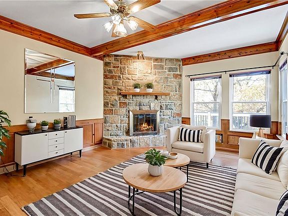 Gorgeous & Move-In Ready with Tons of Updates on Amazing Oversized Lot Backing to Treed Greenspace with No Neighbor View! BONUS - Newer Windows & Slider with Lifetime Transferrable Warranty. All Hardwoods on Main Level Plus Newer Tiled Floor in Kitchen. Cozy Great Room Boasts Stone Fireplace & Pine Beamed Ceiling. Dining Room Can Be Formal or Casual. Spacious Kitchen with Handsome Cabinetry & Roomy Pantry with Pull Out Shelving Opens Onto Large Deck w/ Stairs Down to Patio - Hot Tub Stays! Oversized Master BR w/ All New Master Bath Featuring Cool Tiled Shower/ Walls & Flooring & New Double Vanity. Downstairs Family RM with Built-In Shelves & 2nd Fireplace, 4th BR & 3rd Full Bath Plus Bonus Cedar Closet. Hurry to This Awesome Home in Award Winning Shawnee Mission Schools!