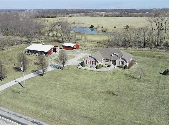Beautiful country home on 10 acres! Your family and loved ones will fall in love with the charm this spacious property has to offer. This well-maintained ranch home features 4 bedrooms, 2.5 baths, 3 car garage, new interior paint, new flooring, ss appliances, large master suite with walk in closet and a large deck to enjoy the country nights. Property is fenced and crossed fenced with a pond, two outbuildings that include water and electric, perfect for horse lovers or livestock. Located on solid surface roads with quick access to I-35 making it a easy commute to KC. This is a must see!
