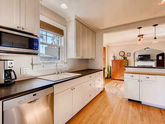 This picturesque Tudor is truly one of a kind, the seller has tastefully remodeled the home while keeping the character and integrity of the home intact. Buyers will enjoy an open concept with beetle-kill pine countertops, stainless steel appliances, and a large pantry. Buyers will enjoy natural light flooding the front room and kitchen plus golf course and mountain views. Wood-burning fireplace located in the front room. Bedrooms offer great closet space, and the main floor bathroom has a large double farmhouse sink with great storage. Access to the basement is perfect for a roommate situation or rental income. The basement has tall 7'1" ceilings. New bathroom in 2016 with large walk-in shower, plus large recreational room. The backyard is ideal for entertaining with a large pergola, great for catching the morning sun and evening sunsets, not to mention a hot tub to soothe your muscles after a long day at the slopes. Tennyson Business District blocks away with amazing restaurants!