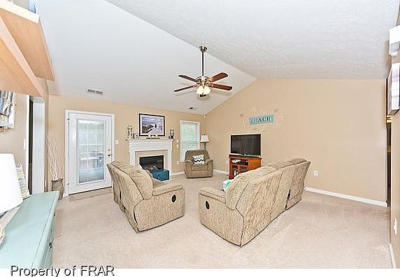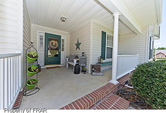 -Spacious and cozy, this home has so much to offer. Over 1600 square feet with three bedrooms, two baths plus bonus. Bonus has closet..could be 4th bedroom! Large fully fenced backyard with woods behind for privacy. Deck and sprinkler system. Established landscaping, concrete curbing. No city taxes, close to Ft. Bragg and shopping.