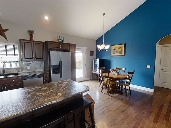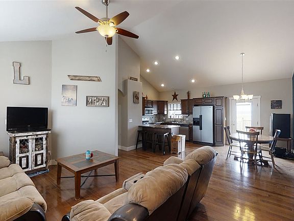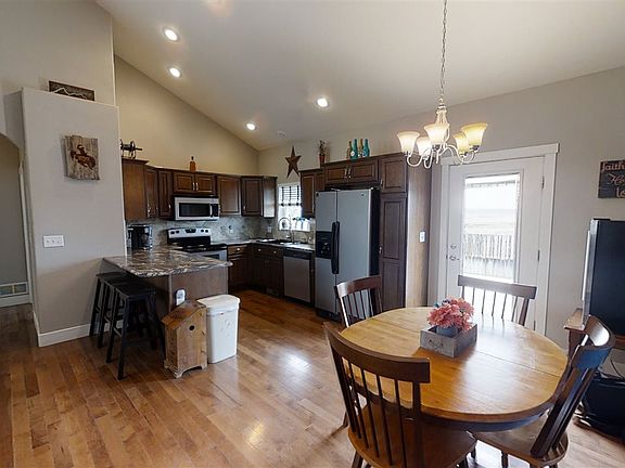 This home features open living area with vaulted ceilings, walnut hickory hardwood floors, beautiful cabinetry with attractive tile backsplash, master suite with walk-in closet, tres ceilings, plus 2 additional bedrooms , & 2nd full bath, central air, an unfinished basement & 2 car attached garage. Fenced yard with large tiered deck & beautiful views perfect for outdoor entertaining. Professionally landscaped with sprinkler system, RV parking & more. A must to see! Call Paul or Mary to tour 307-262-1345.