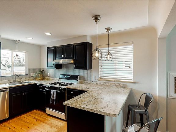 This beautiful Chaffee Park gem offers a terrific open floor plan that is filled with charm, sunlight, and character. A nicely landscaped front yard with planter boxes greets you as you arrive at this home. Step inside, and you will be greeted by gleaming hardwood floors, modern accents, and a terrific open kitchen with a dining peninsula. Updated modern cabinets, and a spacious built-in pantry wall will make your new kitchen a joy to cook and entertain in. A large master bedroom, and a secondary bedroom can also be found on the main level, along with a fully renovated bathroom featuring a glass frame shower, modern tile work, a new sink, and modern floor tiles. Downstairs, you will find new carpeting throughout, along with wonderful family room to unwind in. Two additional bedrooms, an updated full bathroom, and a storage and laundry room complete the basement floor plan. If you feel like enjoying the beautiful Colorado sunshine, you will be able to unwind and entertain in your expansive back yard, complete with a new privacy fence, raised planter boxes, a lovely uncovered patio, and new sod. Additionally, you will find a detached one car garage in the rear portion of the back yard. Just outside of your front steps, you will be able to walk two blocks to 51st and Zuni Park, or take a walk or quick bike ride to Bacon Social House, Common Grounds Coffeehouse, or Sunny's Eatery. Do not miss your opportunity to purchase this fantastic home.