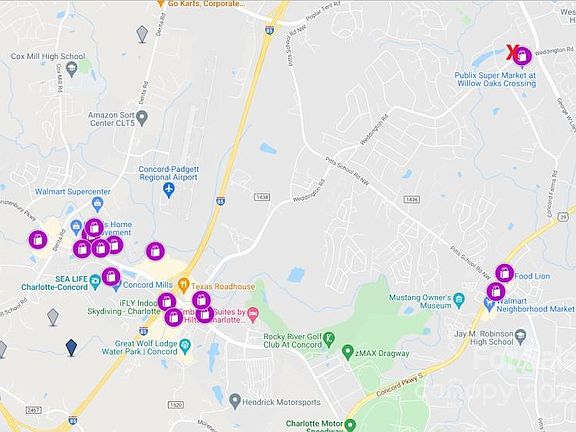Great location directly across from the Publix shopping center near the corner of George Liles Parkway and Weddington Road. Currently zoned RV with the 2030 plan calling for Mixed Use Activity Center. Less than 2 miles to I-85 exit 54 (Kannapolis Parkway/George Liles) and 4.6 miles to Concord Mills. *Home on property is currently rented, creating income as the area continues to develop and increase in value.