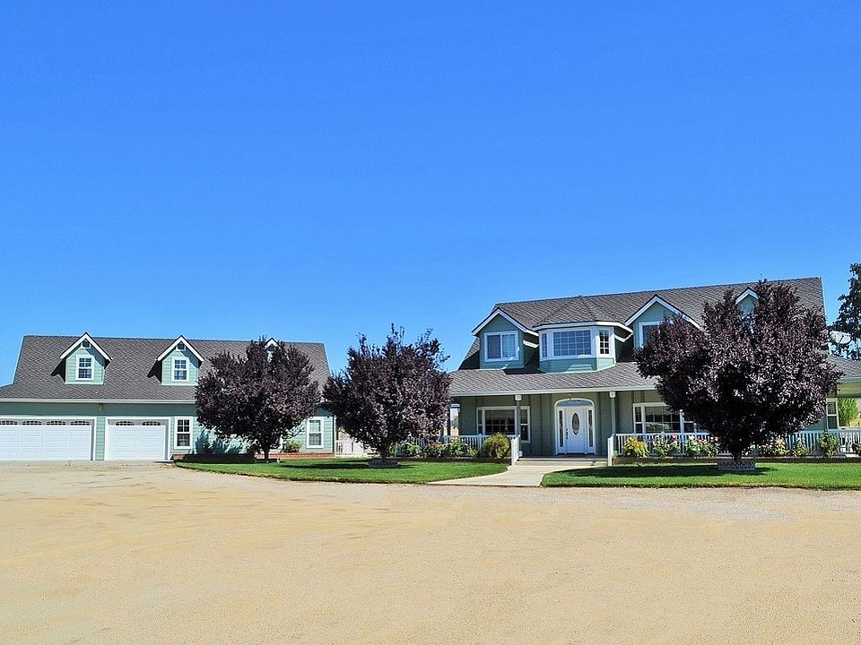 Turn-key country home with everything you can imagine. Built in 2006, main home is 3,238 s.f. w/full 600 s.f. wrap around covered porch. 20'X40' gunite swimming pool on 7+ flat acres. 3/2 + office, formal living, dining and family rooms. Gourmet kitchen w/coml. hood encased in oak, Kitchen Aide stainless steel appliances, wine cooler, bread warmer, 6 burner stove + grill and double oven, custom pot rack, electronic shades. Master is on ground floor. Wood floors 20' ceilings, custom window coverings, elaborate master bath, ample storage. 650 s.f. detached 1/1 guest house with a finished 2nd level. 3+ car garage + 1800 s.f. shop has walk-in cooler and two 12' roll up doors. Brick courtyard, built in BBQ and firepit. Fantastic well with 3 acre vineyard. Fenced and cross fenced. 400 amp electrical panel plus solar system and back-up generator. On paved road with electronic gate and tree lined driveway. Remote but not isolated - great neighborhood.