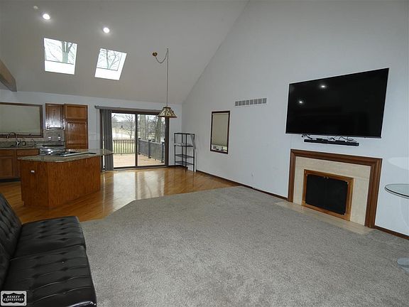 Contemporary home located on a huge country sized lot that is almost a full acre. 4.5 car garage consists of 2 separate garages. One garage is attached with an opener-2nd garage is unattached, located at back end of lot and has an insulated 8 foor door and separate fuse box with 220 line. Granite island kitchen with tons of cabinets, spacious pantry and stainless steel appliances. Soaring cathedral ceiling with skylights in huge great room with gas fireplace and 65 inch flat screen that can stay. Doorwalls from grt room and main bedroom leads out to 3 tier composite deck (very low maintenance). The main 1st floor bedroom has a large walk in closet. Reverse osmosis system, water softener, sprinkler system all round it out. (latest updates-skylites 2016, Ranai tankless HWT 2016, sump with back up 2018.