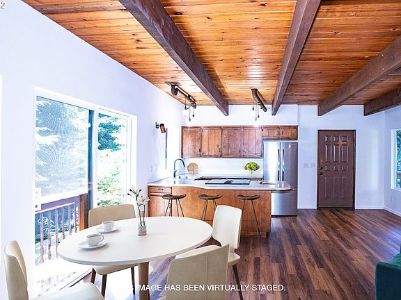 - Features: Beamed Ceilings, High Ceilings, Wood Stove