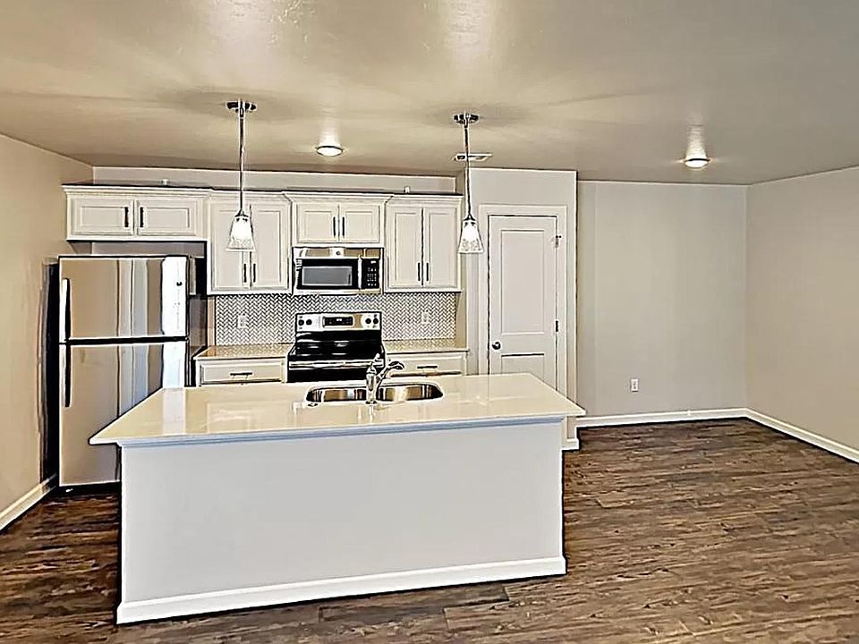 One story duplex. Close to Tinker and shopping. Brand new energy efficient duplex, low maintenance, modern design house with Stainless Steel appliances and quartz tops in kitchen and bathrooms. Each room comes with a ceiling fan. Fridge, washer and dryer are included! Prefer 2 year lease! Tenant pays for water and electricity, mowing is by landlord. Requirements: 650 credit score. no eviction record and combine household income over $65,000.