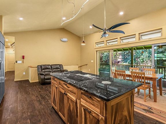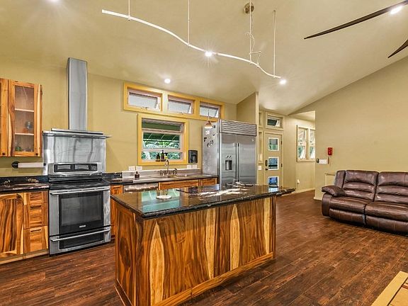 SOLID HOUSE ON 2.8 ACRES OF LEVEL LAND UP AN ENCHANTING VALLEY! Wind thru scenic Hanapepe Valley to your secluded spot. Newer home built with concrete and love has 3 bedrooms, living, dining, and kitchen upstairs and a 4th bedroom and bonus rooms that can be used as home office, ZOOM room, She-shed, Man-cave, or storage. Also included is an infrared sauna. Nice! First story is concrete slab and hollow tile block walls. Second story is wood frame and siding. The open-concept upstairs is centralized with Primary bedroom and bathroom on one wing and 2 other bedrooms and a bathroom on the other wing. Vaulted ceiling upstairs adds to the spaciousness. Kitchen has 4 burner range AND the island has a brand new 2 burner cooktop - both are induction.. Hand-crafted Monkeypod cabinets grace the kitchen and you will love the pantry. Large rear lanai runs across the entire back of the home and sliding glass doors open up to it from each room. Pure municipal water, anaerobic septic system, solar water heater complete the package. It's rare to find acreage on the Westside, and this parcel is framed by the dramatic cliffside that is the Hanapepe Valley, and adjacent to 576 acres of State land. Giant Monkeypod trees shade most of the property and there are mature fruit trees like Cacao, banana, mango, citrus and more. Most of the land is level so you could raise livestock or horses. There is even a full size container for storage next to a roofed concrete slab for cars or boat or? Conveniently located just 16 miles from Pacific Missile Range Facility (PMRF) in one direction and Lihue in the other direction. Salt Pond is only 2.6 miles away. Port Allen is just up the hill. Historic Hanapepe Town is just down the street and Pakalas is just down the road.