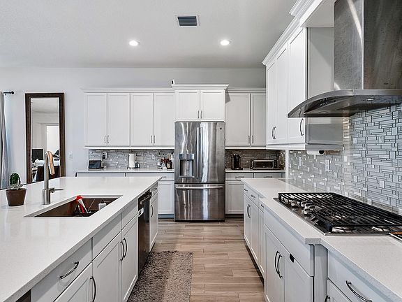 Introducing 5011 Beland Drive, a stunning SFH with 4 bedrooms, 4.5 bathrooms, den (w/ closet), expansive loft and a 3-car garage with car lift. This modern masterpiece offers impact windows and doors, a tankless water heater, and an unrivaled open-concept design. Step through the 2-story double door entry foyer to discover a luxurious first-floor primary suite with 2 walk-in closets, complemented by 3 ensuite bedrooms, each featuring walk-in closets. With it's spacious laundry room (extra storage), this 2019 construction is both practical and chic. The property boasts an impressive array of features, including quartz countertops, Shaker cabinets, and built-in cabinetry in the large walk-in pantry and mud room. Outside, a covered patio awaits, providing the perfect space for entertaining