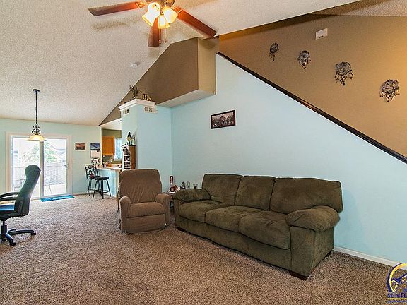 HOA maintained cul-de-sac so you can live easier letting them mow and remove snow. Conveniently located townhome SW of 6th and Wakarusa. New roof and furnace/air conditioner installed, granite countertop in the bathroom, ceramic tile, vaulted living room, new slider door to the fenced in backyard. Master bedroom on the main level with two bedrooms upstairs that the current owner barely uses.
