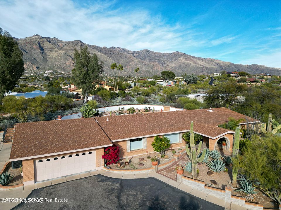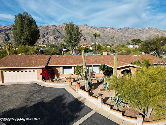 Beautiful panoramic mountain and city views from the hillside lot in Skyline Bel Air Estates! Sunning landscaping in front and rear of this 5bed 3.5bath home right off of Swan/Sunrise. The split floor plan is great for guests to stay in this home or a family with children. This home is private and quiet, perfect for enjoying the view from the back patio overlooking an elegant pool. The formal dining and living area are spacious and great for entertaining, while seeing beautiful Tucson's city lights at night.