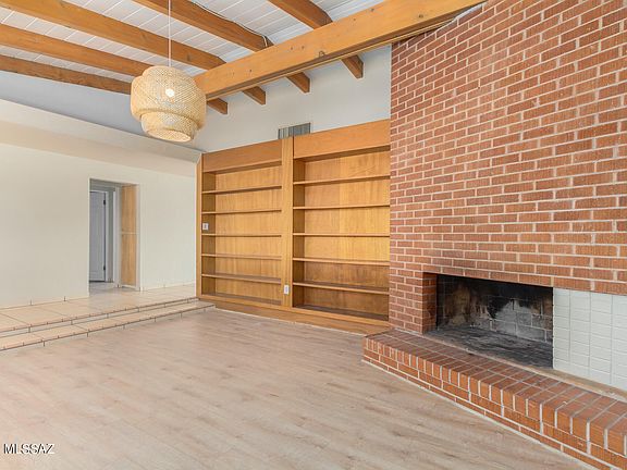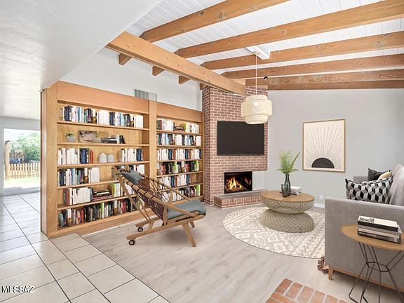 Don't miss the opportunity to view this immaculately updated home, ideally situated in a central location. The exterior exudes charm with its low care landscaping, mature shade trees, and abundant parking. The interior features vaulted ceilings, exposed beams, picturesque windows, tile flooring, and a sunken living room complete with a brick-wall fireplace and built-in shelves. The bright and spacious eat-in kitchen is a highlight, boasting new appliances, pendant lighting, wood cabinets, ample counter space, and sliding glass doors leading to the backyard. Additionally, the sizable den offers recessed lighting, a separate exit, and new mini split. The primary retreat features a generously-sized sliding door closet and a pristine ensuite. Step outside and unwind in the expansive backyard, which includes a lush lawn, a patio, and a Ramada with beautiful pavers. This property truly offers a perfect blend of style, comfort, and outdoor enjoyment.
