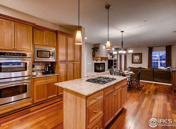 VIEWS VIEWS VIEWS! Located on a cul-de-sac w/ only one adjacent neighbor backing to neighborhood open space, this 5 bed, 4 bath+ loft home is move-in ready. Home radiates warmth w/ Brazilian hardwood flooring, multiple fireplaces, designer accents, wrought iron balusters, radiant floor heating in master bath, and main floor office or bedroom with adjacent 3/4 bathroom. The newly built, covered back deck complete w/ a built-in gas grill, television, speakers & heaters is the highlight of the home