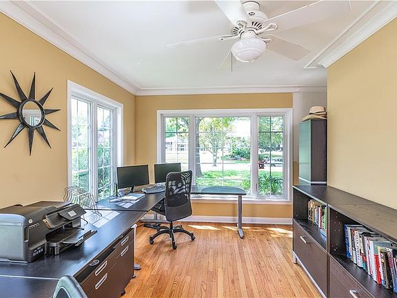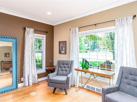 Beautiful Waterbury Brick home with 1 attached garage and a 2 car detached garage. Updated and open kitchen with space for casual bar and a sitting area to gather or could be used as a formal dining area. New Anderson Windows throughout, additional updated master bath and full bath upstairs. Hardwood floors are finished consistently throughout the main, wrought iron rails, step down into living room with Italian marble fireplace. Family room, opens to screened porch which overlooks backyard with an additional 2 car detached garage. Nicely landscaped. Arches are repeated throughout the house. Three large bedrooms with large closet space. Crown molding everywhere. 2 large staircases lead to a sprawling basement where there is another beautiful fireplace and living area with 3/4 bath. The basement has been completely water-proofed, has a large family room, plenty of storage.