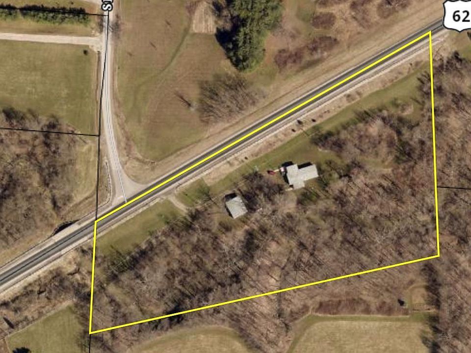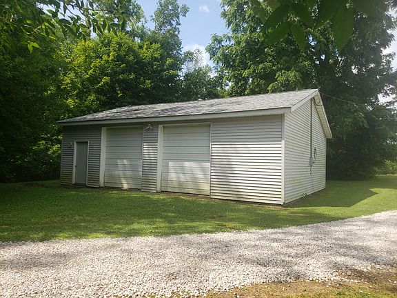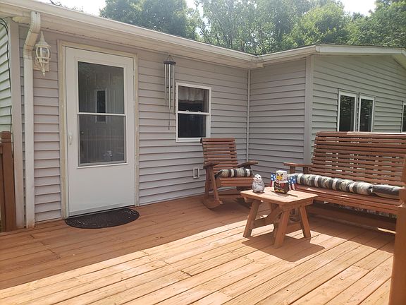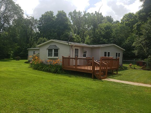 Great Road Frontage on 5+ acres with Stream running across and wooded! Manufactured home with 2 Living Spaces and open kitchen. Fenced yard with covered patio. Detached Garage with concrete floor and electric. Furnace replaced approx 5 yrs and roof 7 years. Well and Septic. Northridge Schools. Home Sweet Home!