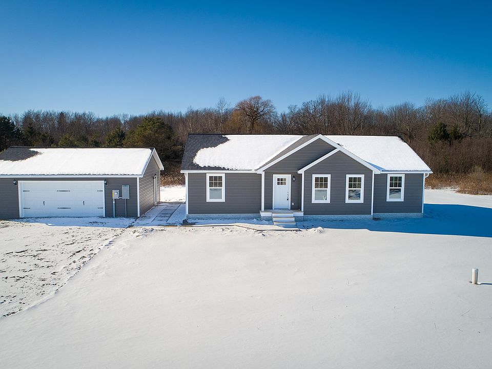 Experience the tranquility of country living with this stunning newly built ranch nestled on 14.32 private wooded acres. Completed in late 2024, this home offers peace, privacy & endless views of nature, sitting approximately 80 yards off the road. Conveniently located just 2 miles from the US-10 entrance & only a 15-minute drive to Midland, this property combines rural charm with easy access to nearby amenities. Featuring 3 bedrooms, 2 full baths, & an open layout, this home is perfect for entertaining or relaxing. The all-season sunroom showcases breathtaking views with no traffic or neighbors in sight. Built with 2x6 construction & a high-efficiency furnace, this home meets modern energy standards, ensuring low utility costs. Quality craftsmanship shines throughout this home, built with a focus on quality at an affordable price. A 30' x 24' detached garage provides ample storage space. This rare opportunity to own a custom-built home in a serene setting won't last long. Reach out today to schedule your showing & make this your dream retreat!
